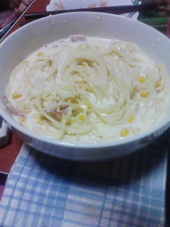 ベーコンとコーンのクリームパスタ。